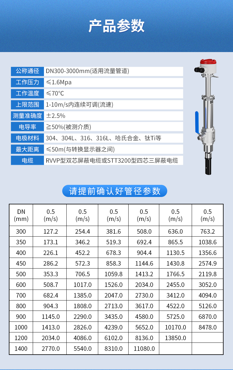 產品名稱:聯測_LDGC-SIN插入式電磁流量計 一體式 大口徑 污水廢水防腐