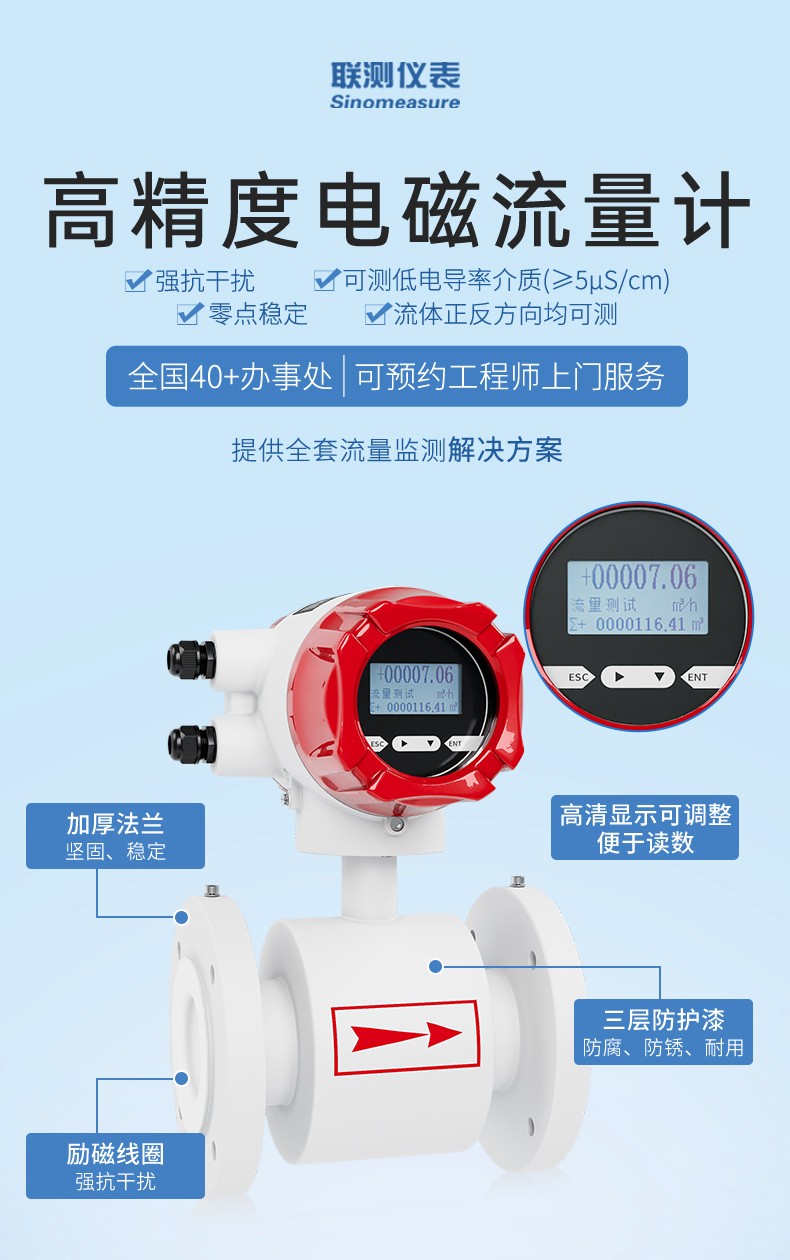 產(chǎn)品描述:電磁流量計基于法拉第電磁感應(yīng)原理設(shè)計,用于直接測量封閉管道內(nèi)導(dǎo)電液體的瞬時流量,并具有流量累積功能。在進行現(xiàn)場監(jiān)測顯示的同時,可輸出標(biāo)準(zhǔn)的電流信號、脈沖信號和 RS485 數(shù)字信號,供記錄、調(diào)節(jié)、控制使用,實現(xiàn)檢測自動控制。可廣泛應(yīng)用于自來水、化工、煤