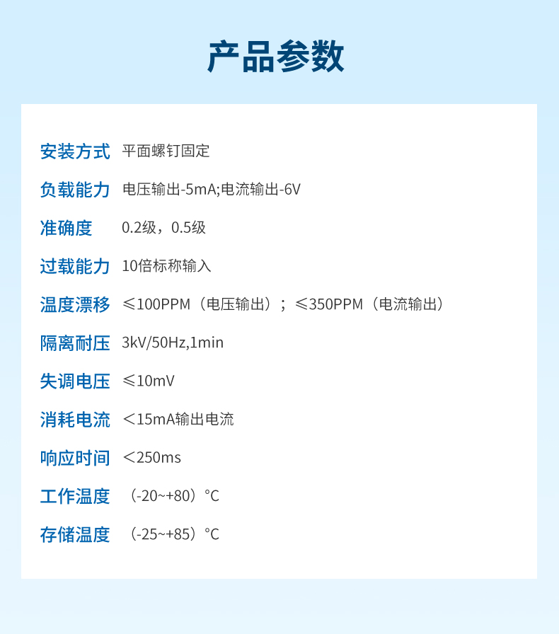 產品描述:穿孔式交流變送器是一種將被測交流參信號轉換成直流電流、直流電壓并隔離輸出模擬信號或數字信號的裝置。采用新型電磁隔離,24V輔助供電三重隔離標準,穿孔式安裝標準導軌和螺釘安裝,安全可靠。