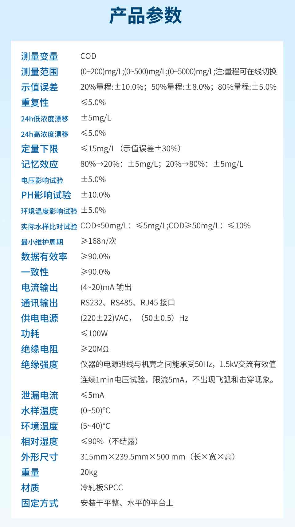 產(chǎn)品名稱:聯(lián)測_COD水質(zhì)在線分析_試劑消耗量小,雙光路式檢測,支持USB、TF卡