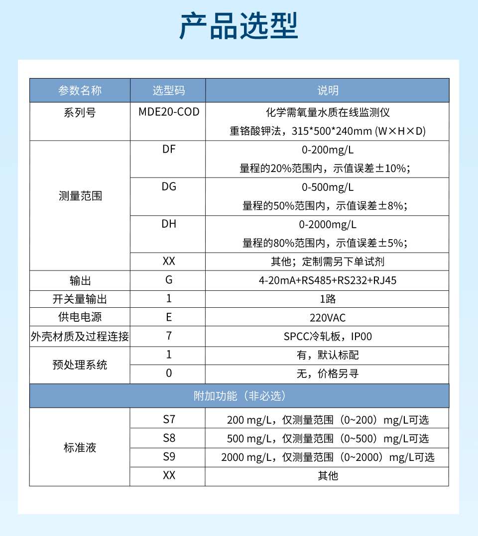 產(chǎn)品描述:COD水質(zhì)在線分析儀采用重鉻酸鹽法檢測,符合《化學(xué)需氧量(CODCr)水質(zhì)在線自動(dòng)監(jiān)測儀技術(shù)要求及檢測方法》(HJ 377)、《水質(zhì) 化學(xué)需氧量的測定 重鉻酸鹽法》(HJ 828)和《水質(zhì)化學(xué)需氧量的測定 快速消解分光光度法》(HJ/T 399)、《污染物在線自動(dòng)監(jiān)控(監(jiān)測)系統(tǒng)數(shù)據(jù)傳輸標(biāo)準(zhǔn)》(HJ 212)、《地表水自動(dòng)監(jiān)測儀器通信協(xié)議技術(shù)規(guī)定》等標(biāo)準(zhǔn)和規(guī)范的要求。