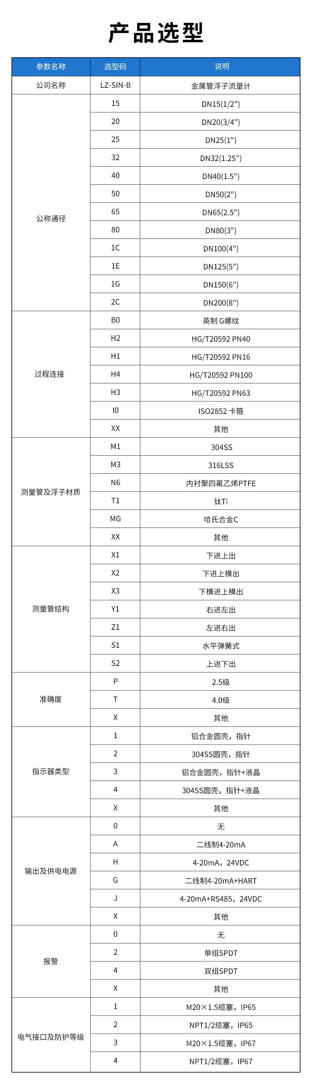 產品名稱:SIN-LZ-B金屬管浮子流量計金屬轉子流量計遠傳純水液體水防腐4-20mA