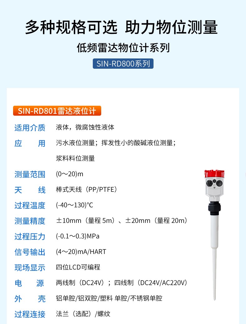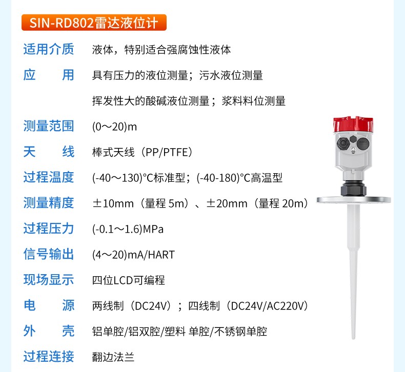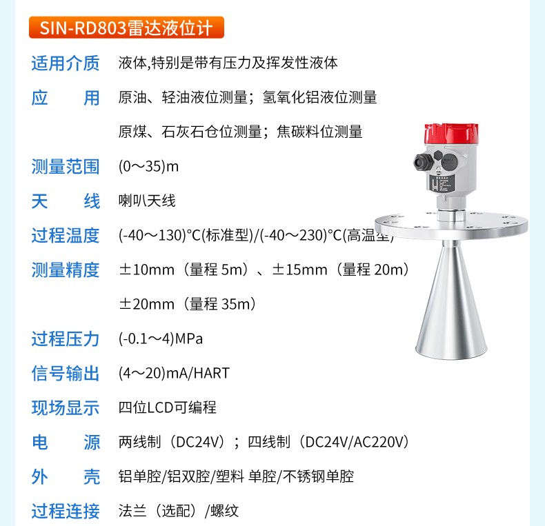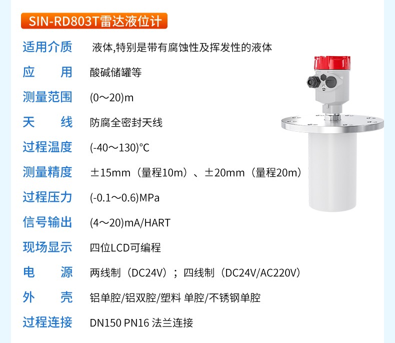 產品名稱:聯測_SIN-RD803雷達液位計_適用于揮發性液體