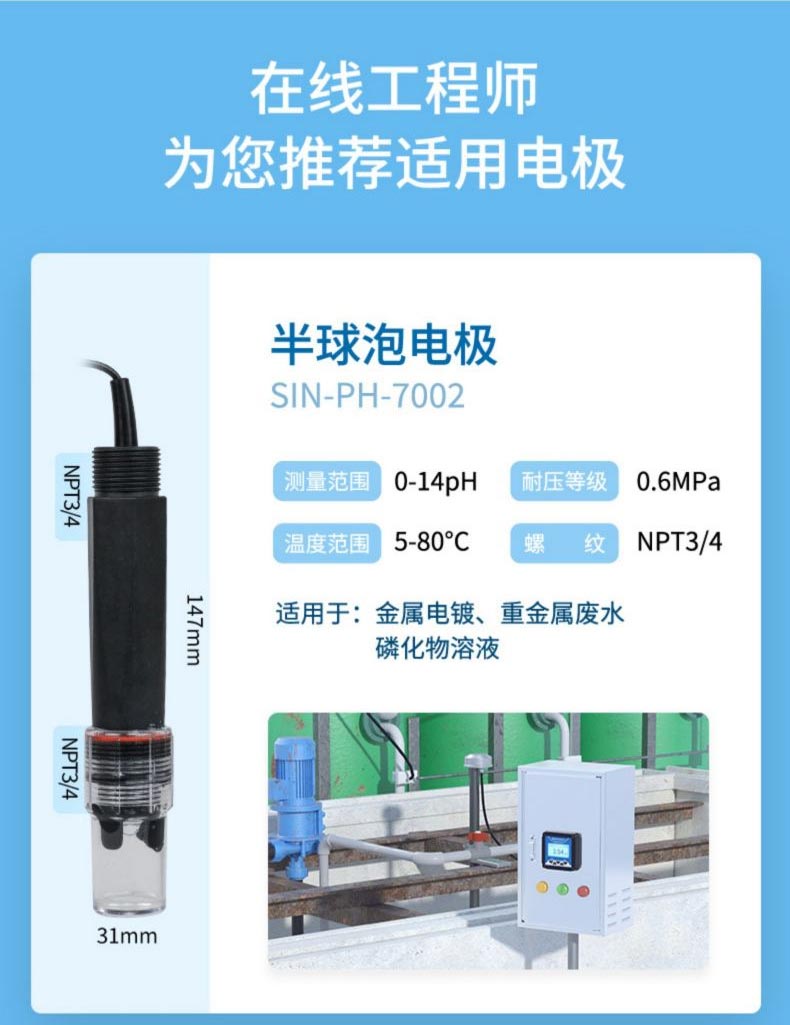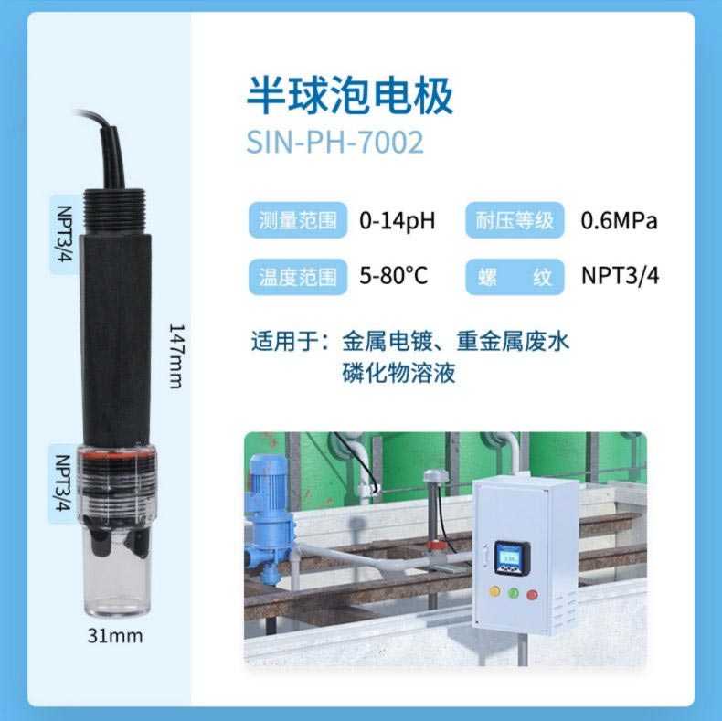 產(chǎn)品名稱:聯(lián)測_SIN-pH-7002半球泡電極_電鍍廢水專用款