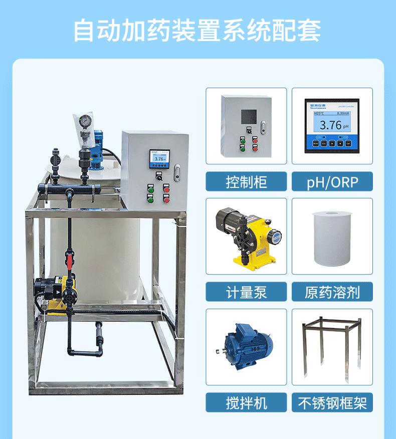 產(chǎn)品描述:聯(lián)測全自動加藥裝置pH中和調(diào)節(jié)pe加藥桶攪拌機(jī)pac/pam水處理設(shè)備