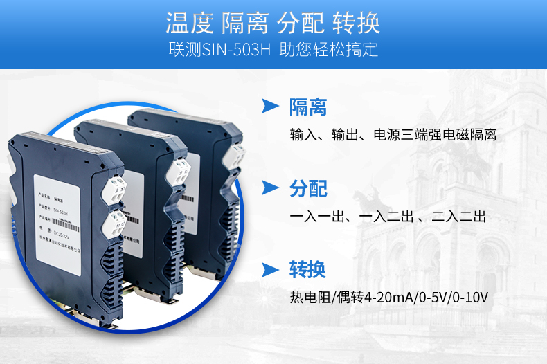 產(chǎn)品描述:將PT100等熱電阻跟熱電偶信號(hào)轉(zhuǎn)換成各種電流、電壓等標(biāo)準(zhǔn)模擬量信號(hào),可以與PC機(jī)、PLC、DCS等實(shí)現(xiàn)工控監(jiān)測(cè)連接。抗干擾能力強(qiáng),遠(yuǎn)傳不受其他設(shè)備影響。輸入、輸出選擇范圍寬,準(zhǔn)確度高。電源可選擇,導(dǎo)軌安裝便于檢測(cè)與安裝。廣泛應(yīng)用于各種對(duì)溫度集中測(cè)量的監(jiān)控系統(tǒng)中。