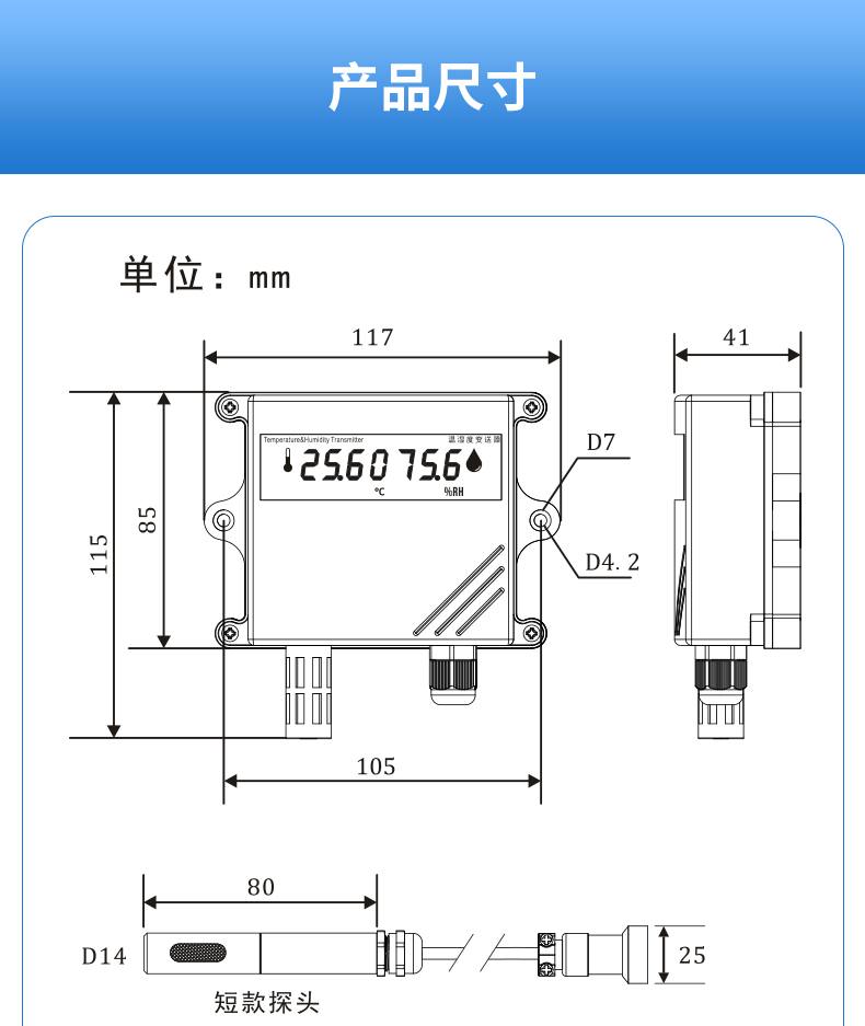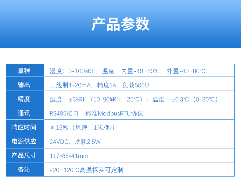 產品名稱:聯測_壁掛式溫濕度傳感器變送器 (4-20)mA RS485_溫濕度計帶顯示_