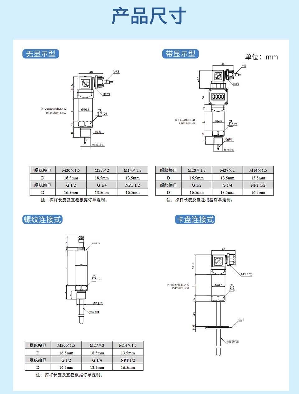 產品描述:本產品使用高穩定性的電路進行信號處理,實現溫度連續測量和輸出,采用高精度24位ADC轉換為數字信號,同時可以實現顯示、遠傳等功能。廣泛應用于石油、化工、電力、輕紡、環保等領域中對水或油的溫度測量。