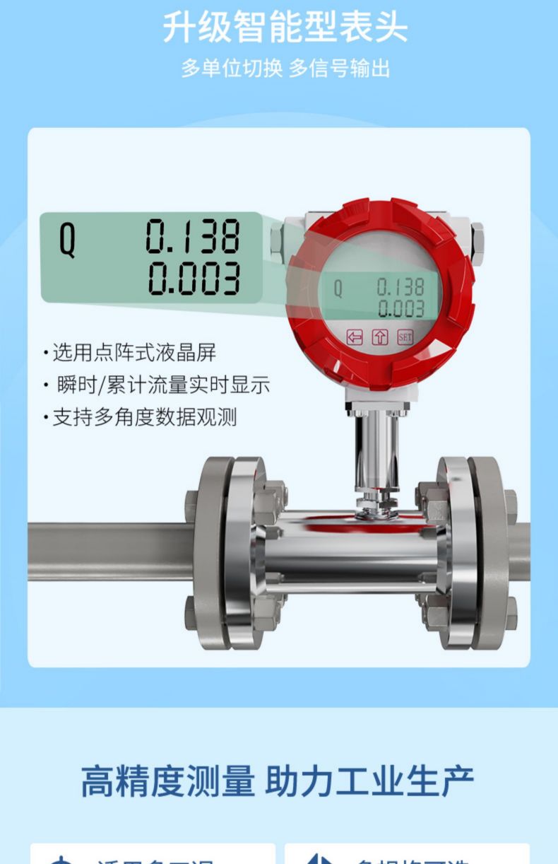 產品描述:液體渦輪流量計基于力矩平衡原理,屬于速度式流量儀表。它具有準確度高、重復性好、結構簡單、壓力損失小、維修方便等優點,于測量封閉管道中低粘度液體的體積流量。在石油、化工、冶金、供水、造紙等行業中具有廣泛的應用。